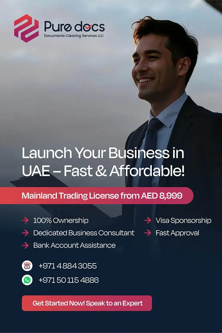 Thinking of starting a business in the UAE? Pure Docs Services assist you to establish easily in the freezone, Mainland or Offshore whichever you prefer to achieve your objectives—including seamless document clearing services for hassle-free approvals.